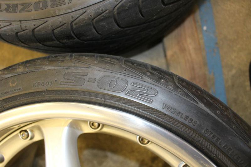 Fronts: 18X9" ET 52 with 225/40/18 Bridgestone S-02 60% left