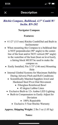 Ritchie Compass, Bulkhead, 4.5" Combi W/ Inclin. Bn-202 on 2040-parts.com