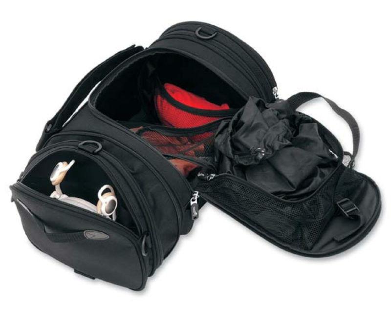- Versatile mounting system installs on luggage rack, back seat or sissy bar; clips onto most Saddlemen touring bags