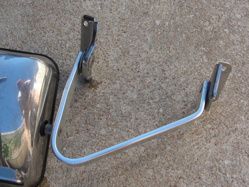 Here are a set of used Stainless Steel Side Mirrors that were used on Pickup Trucks, SUVs etc such has Chevy Blazers, Ford Explorers etc (any info will be greatly appreciated). I do not see a manufacture, but they look like GM, but I am not sure. They are in used, very good condition with some scratches and a ding or 2, but the mirrors are clean and clear.