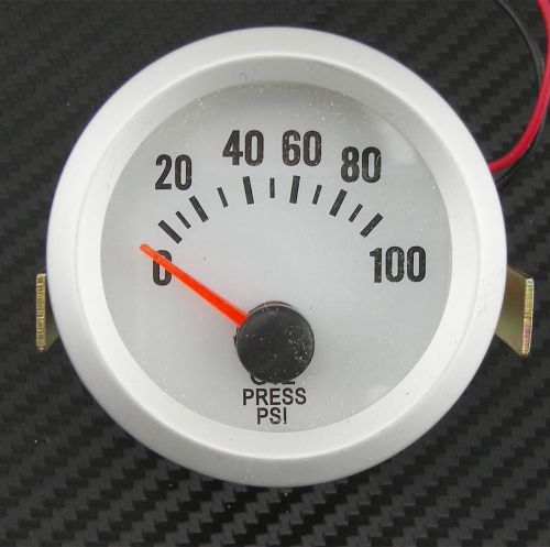 Auto machine oil pressure meter gauges 0~100psi white dial silver shell blue led