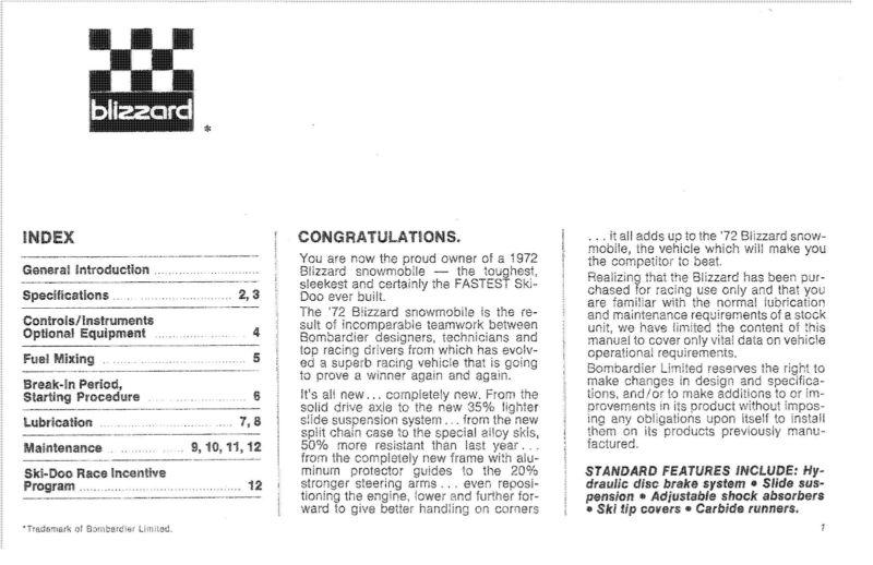 Ski-doo Snowmobile Owners Manual 1972 Blizzard on 2040-parts.com