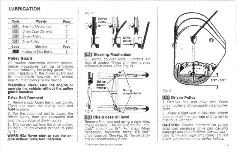 This is a reproduction of the Ski_Doo Snowmobile Owners Manual For Vehicle Maintenance and Safety.