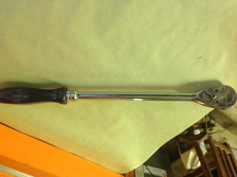 FOR BID...SNAP ON (USED) 1/2 IN DRIVE RATCHET SEMI LONG HANDLE ( PLASTIC COMFORT) WILL SHOW SIGNS OF USE..SOME MARKINGS AND SLIGHT NICKS ON HANDLE..BUT RATCHET WORKS PERFECTLY. AS ALWAYS BID WITH THE CONFIDENCE OF THE SNAP ON NAME BEHIND YOUR PURCHASE!!