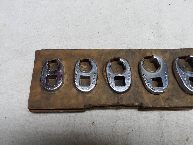 SNAP-ON...FLARE NUT WRENCHES...3/8" DRIVE...(7) THE SIZES ARE: 3/8" 7/16" 1/2" 9/16" 5/8" 11/16" 3/4" USED, LOOKS IN GOOD CONDITION |
