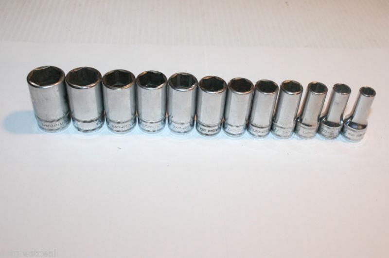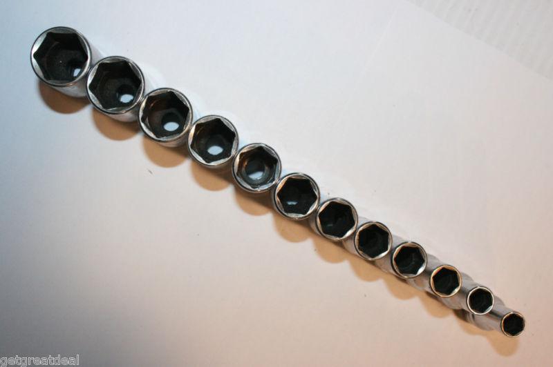 Snap-on tools 3/8" drive deep 12-point socket set 14pc 1/4"-1" on railing (US $315.00)