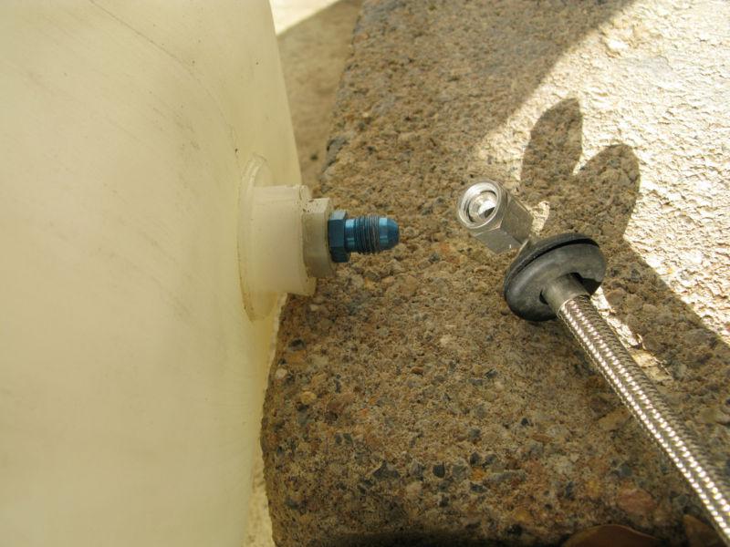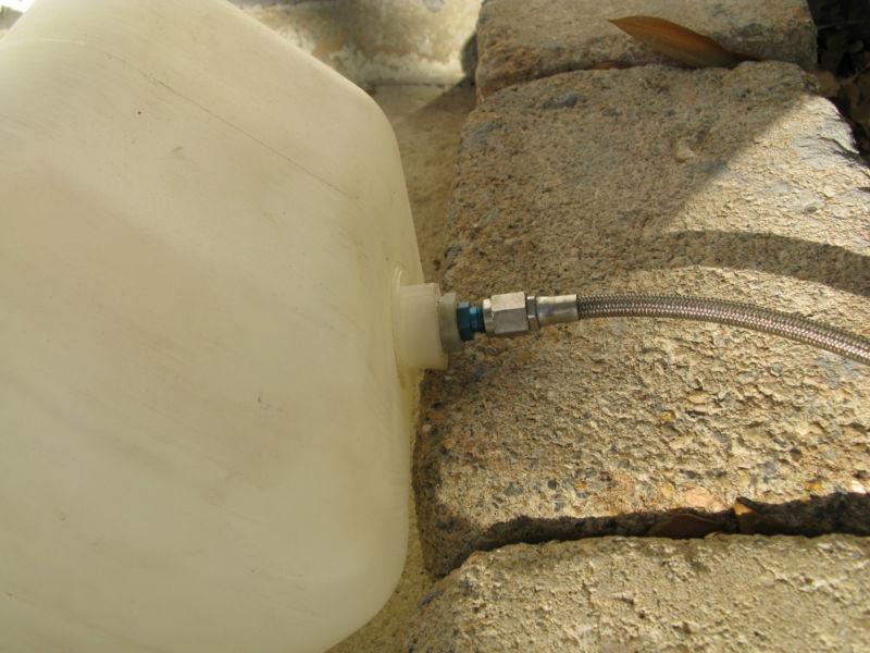 For sale is a 2.5 gallon tank, 24” hose with an AN fitting. The kit mounts in the spare tire tub of CTS-V and requires minor modifications (the tub lid needs to be notched and hold-down brackets made). The tank cap needs a new gasket.