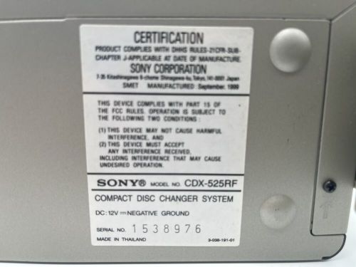 Sony Compact Disc 10-cd Car Changer Cdx-525rf (no Psu Or Remote) on 2040-parts.com
