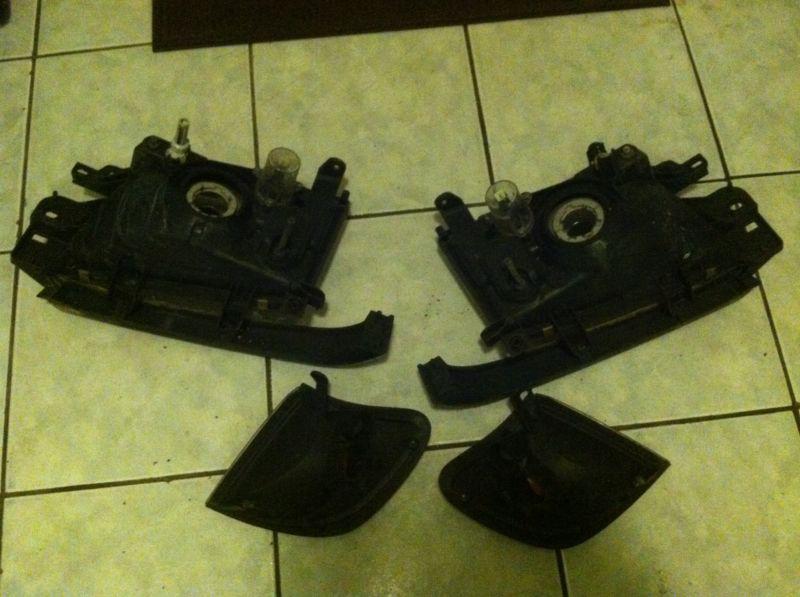 Head lights and corners from a 99 forester. The passenger side headlight and corner lamp are in good condition. The driver side healight has a rock chip in the middle and the driver side corner lamp has a crack.