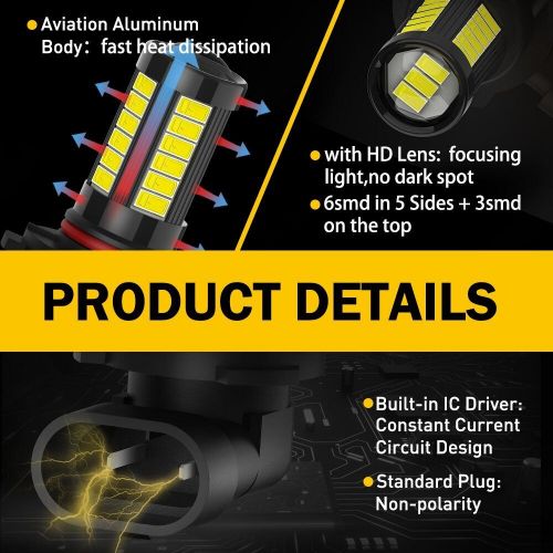Super Bright 2000lm 9145 Led Fog Light Driving Bulb 6000k White High Power 2set on 2040-parts.com