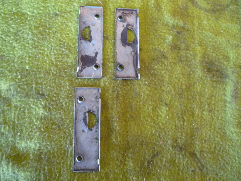 Three 1935 Cadillac Door Striker Plates. (mounts to door) Dirty but should clean up well.