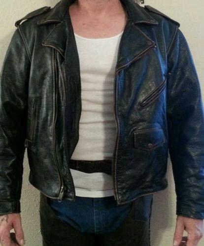 Wilson large mens leather jacket motorcycle punk rock distressed moto piping (US $99.99)