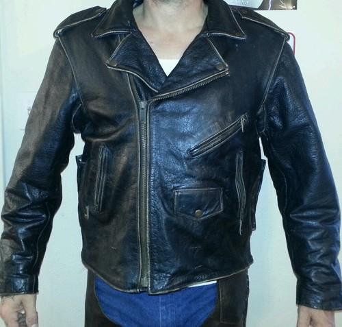 Mens vintage open road black leather motorcyle jacket w/ fringe sz 38 #492(US $165.00)