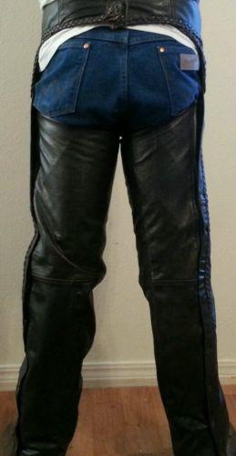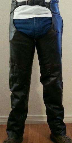 Like new condition jacket is size 46 with soft removable iner linear. Chaps are size XL. Both matching brown leather from pakistan. As is no refunds or returns