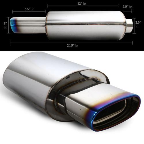 Universal Oval Titanium Muffler~ Square Blue Tip Euro Type 2.5" Inlet/5.5" Outle on 2040-parts.com