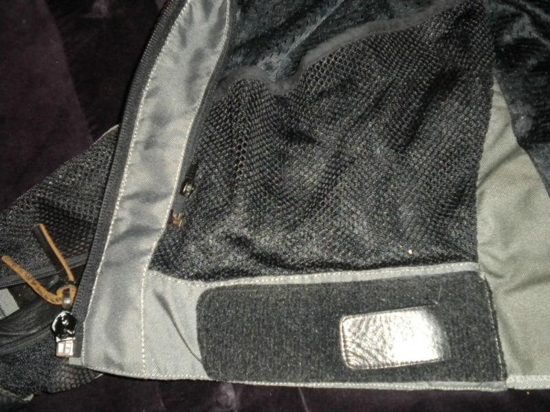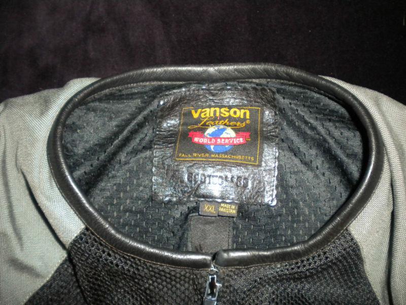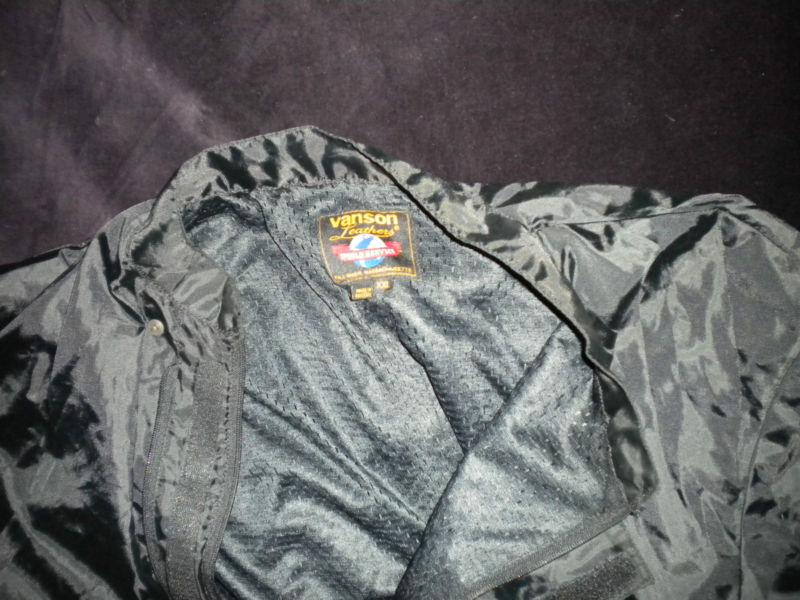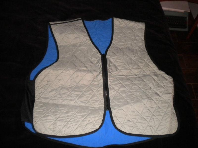 Auction includes "hydro-gel" vest (not made by Vanson). Dip vest in bucket of water, put on silver side out, put jacket over vest. Airflow creates "swamp cooler" effect. A/C for your torso. Dramatic difference in hot weather. Gel designed to "hold" water so NO DRIPS all over motorcycle.