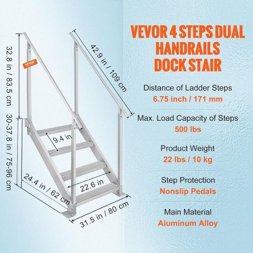 Vevor Dock Ladder With Rubber Mat, Steps 30"-39" Adjustable 4 Step on 2040-parts.com