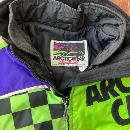 Vintage arctic cat arcticwear ski snowmobile racing jacket nylon neon size large(US $129.99)