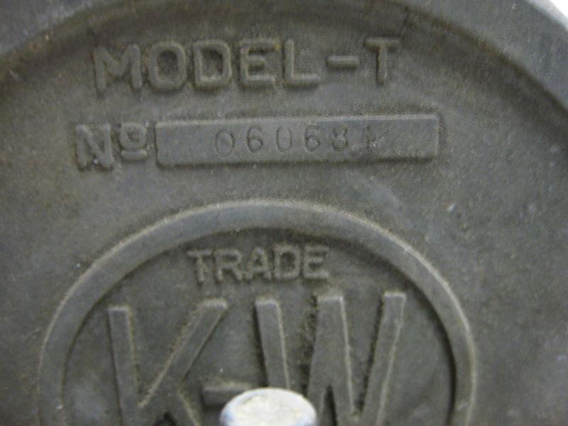 A KW model -T magneto, I don't know how to check it so it is sold as is. It looks good the shaft turns check pictures, will answer questions. The brass cover has some cracks.