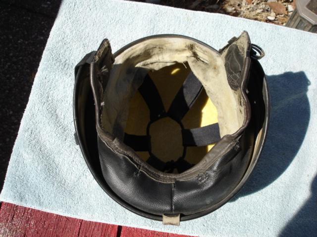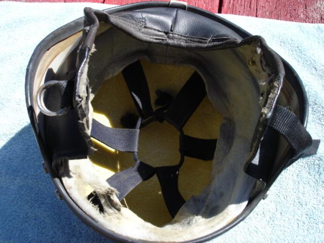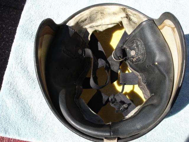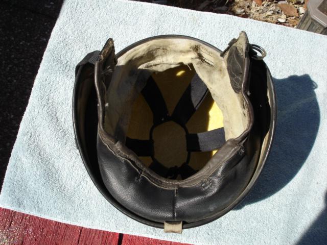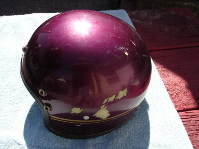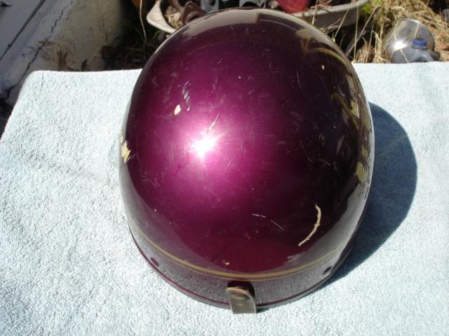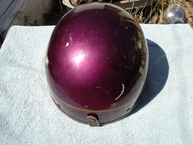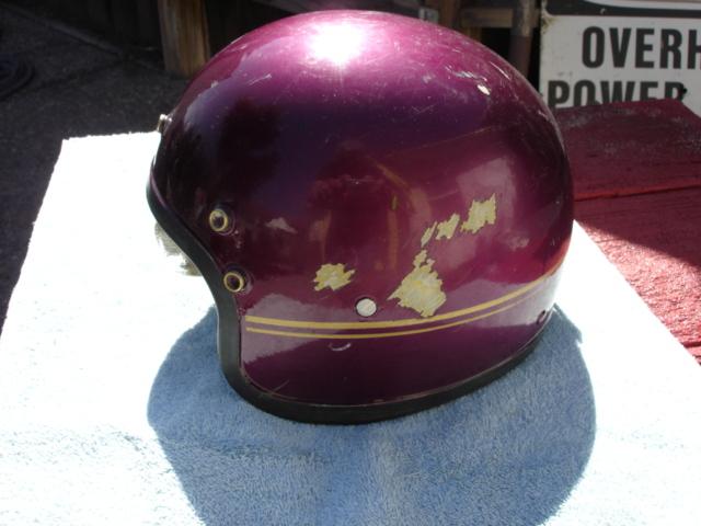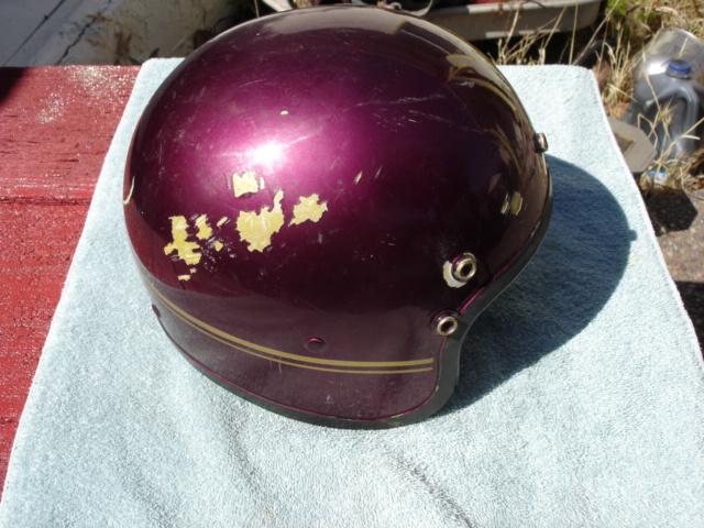 This is a rare early 60s halfshell helmet bobber. not sure the maker but looks American has five buttons for visor mounting. The liner is tattered but there, it has the earflaps and the strap