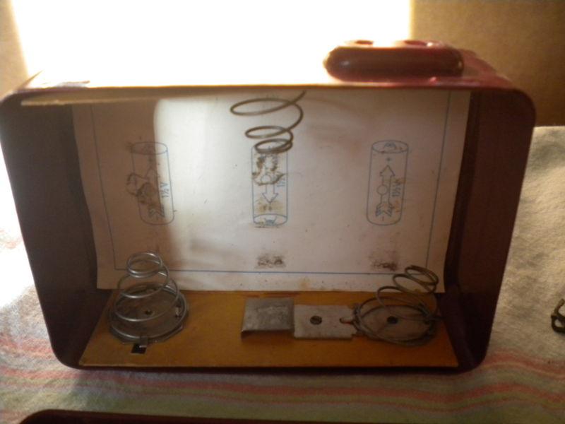 Here is an original 1950's-1960's portable auto shaving kit made by Phillips. Complete and in excellent condition considering its age. Nice auto accessory that will display nice in your glove compartment. Comes with cigarette adapter for auto charging or you can install batteries, also has the interchangeable blades and hair brush. Winning bidder to pay within 3 days close of auction and $5.95 mailing cost. Thanks