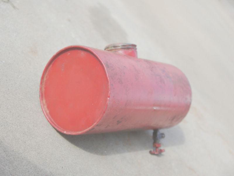 This is a vintage Wisconsin Round gas tank -In great shape the vaulve on the bottom is froze but it might can be freed up Or just buy a new brass fitting but the treads are all clean, the tank is 9 inches X 4 inches it has 0 dents the cap does have some pings the inside has some surface rust I just poured gas a slung around but it can be cleaned out or sand blasted but no pitts anywhere inside or out over all looks great, thanks