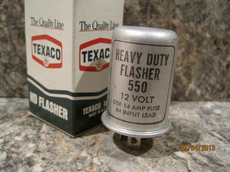 NOS Texaco 550 Heavy Duty flasher. Fit 12volt vehicle systems with 3 terminal. The box was opened once to take pictures. Please email me with any questions.