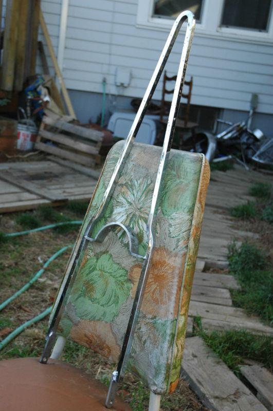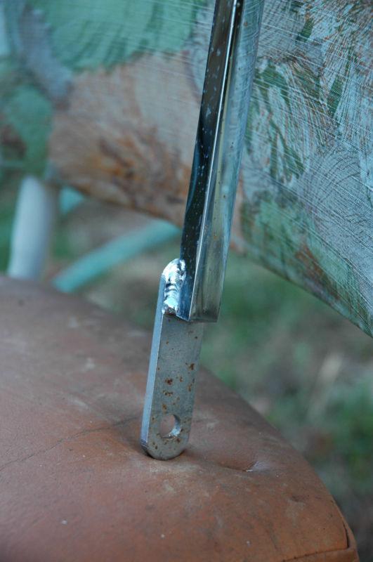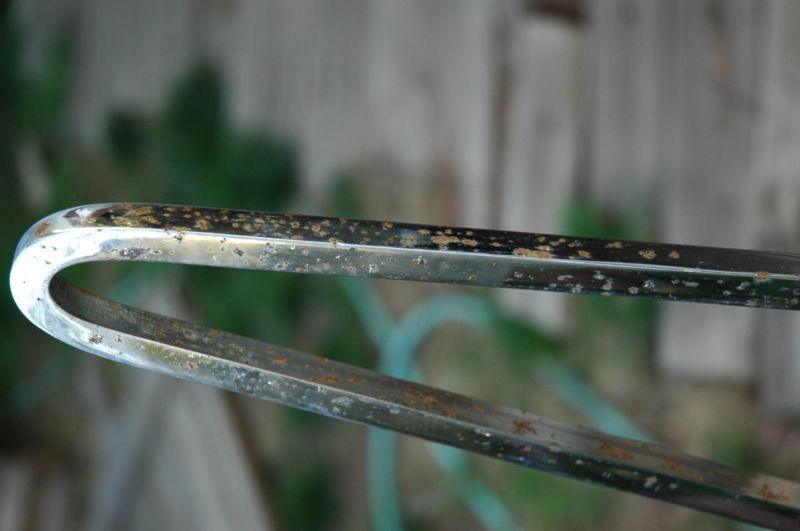Vintage sissy-bar off a Triumph hardtail. Dimensions: 31" overall height, 11 1/2" from axle plate mount to fender, 18 3/4" from fender to top, 8 1/2" width at axle plate. Chrome isn't perfect, but it's still badass and well constructed.