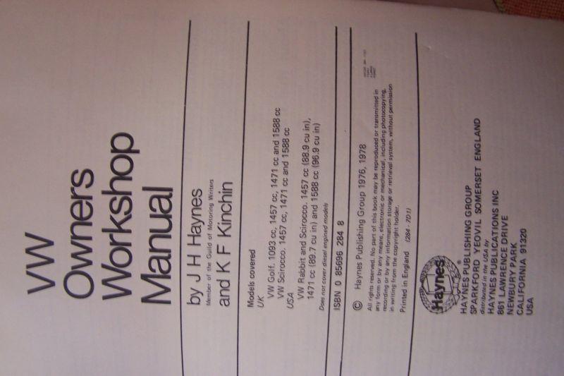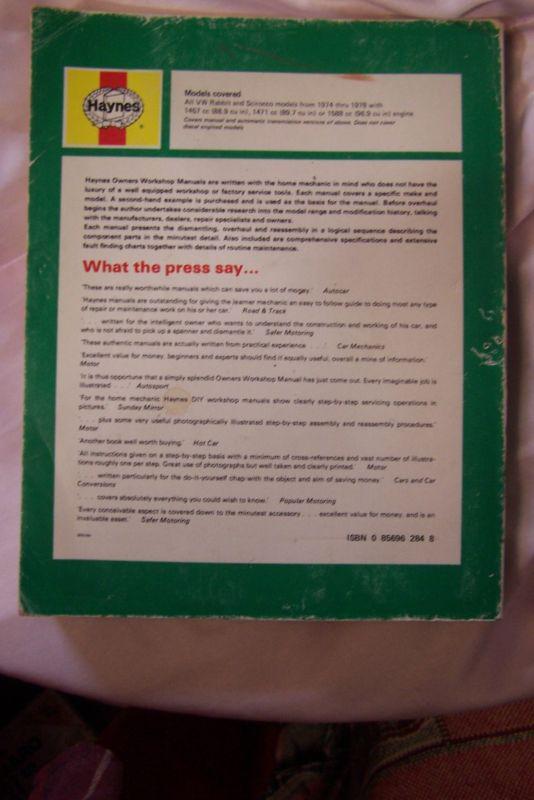 Vw Rabbit & Scirocco 1974 Thru 1978 Repair Manual on 2040-parts.com