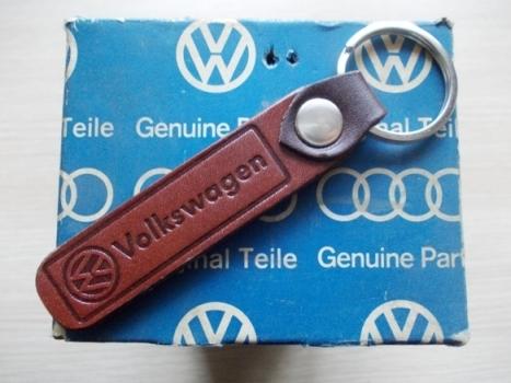 NOS VW Keychain. Real leather. VW logo and script on both sides.