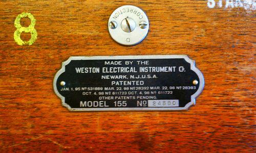 For sale is one used Weston ammeter in wooden case, Model # 155, Ser. No. 24580, old and of unknown functionality, strictly as is for collectible. Free Continental US shipping, 14 day returns.
