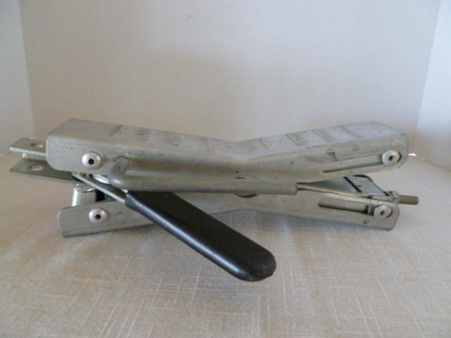 Wheel chock for trailer or RV. Goes between the tires to stop any back and forth motion. Fits tamden axle. Locks in place.