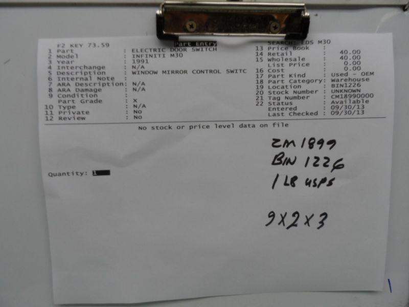 Window Mirror Control Switch Panel Oem 25401-f6510 Nfiniti M30 1991 on 2040-parts.com