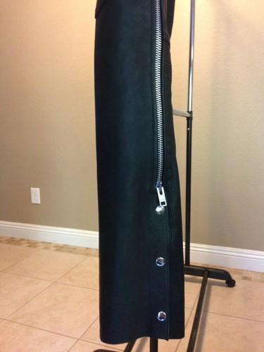 Men's black leather heavy weight motorcycle chaps adjustable stretch leg pocket(US $55.00)