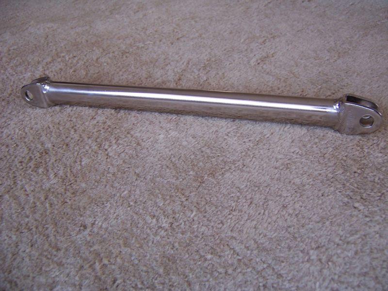 Nickel plated rear brake caliper stay from '92 FZR600. I had it nickel plated along with a box full of other parts. I ended up using an aluminum brake stay. This piece was never installed on a bike after plating.... it will fit many other yamaha motorcyles...but you will need to verify this for yourself.