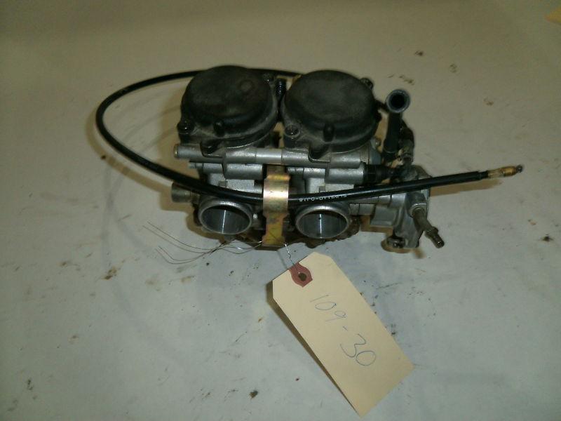 2002 Yamaha Raptor 660 Carburetor. Includes Choke Cable. Just Removed from a Complete Raptor. MAY FIT OTHER MAKES OR MODELS, RESEARCH BEFORE PURCHASING. ALL PICTURES ARE OF ACTUAL ITEM, PLEASE LOOK CAREFULLY AT ALL AVAILABLE PICTURES BEFORE PURCHASING. PLEASE READ POLICY INFORMATION BELOW BEFORE PURCHASING ITEM!!! Item 109-30 NOTE: Shipping prices reflect our actual cost. We try to keep them as low as possible, but as the carriers rates increase, we must cover our cost.