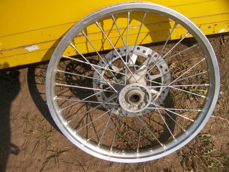 Yamaha YZ80 or YZ85 front wheel. Used. Fits 1993 through 2013 YZ80 and 85. Good condition and includes everything you see. Rim, spokes, hub, and disc.